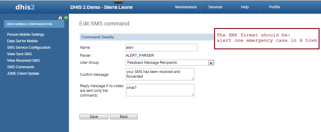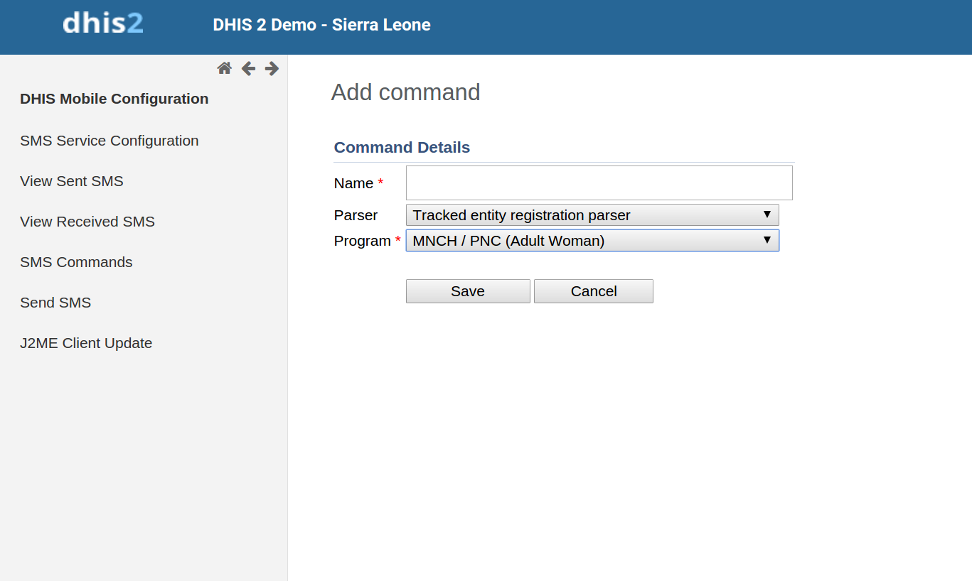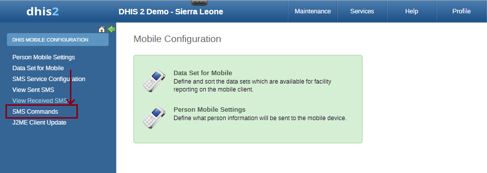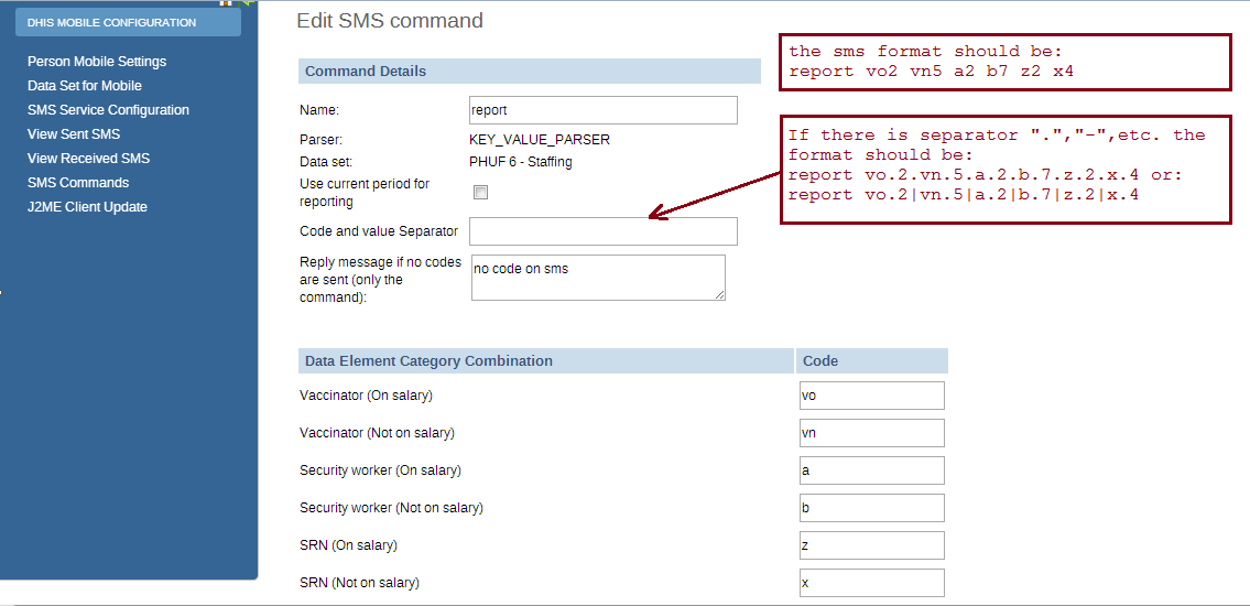 SMS command feature helps DHIS2 system receiving SMS from users, patients, or even anonymous. A SMS command is an object containing the configurations for each SMS form: reporting data from phones or j2me apps, alerting users, registering patient or user, etc.