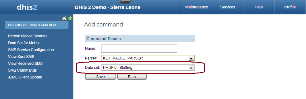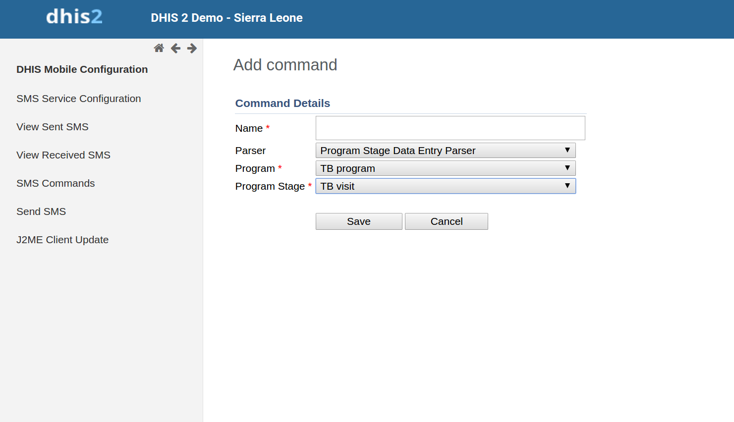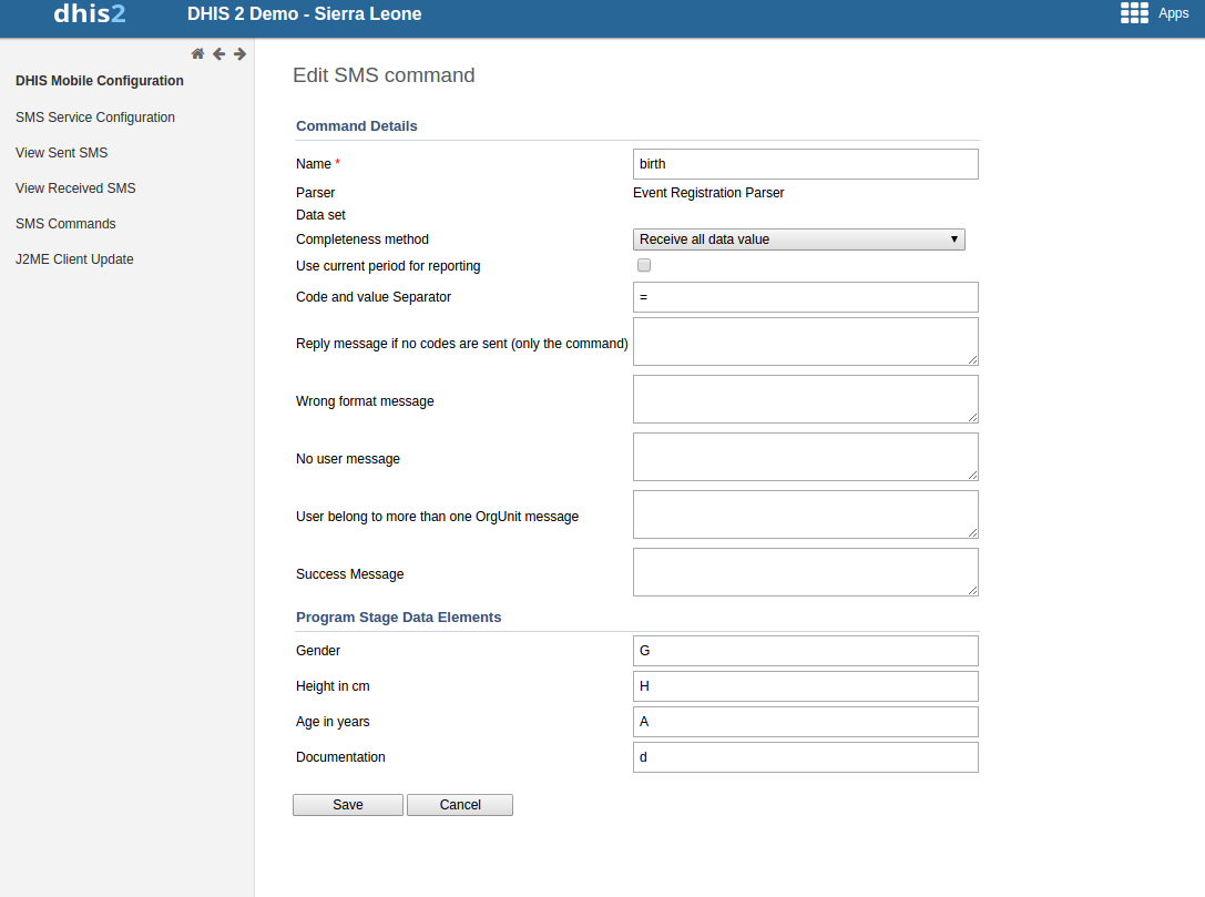 SMS Command for Program Stage Data Entry