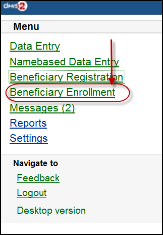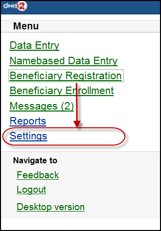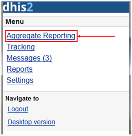 7. Desktop version: navigate to the desktop version of DHIS2 for administration.