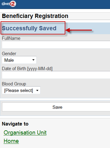 A message "Successfully Saved" will appear when the beneficiary is created/registered successfully.