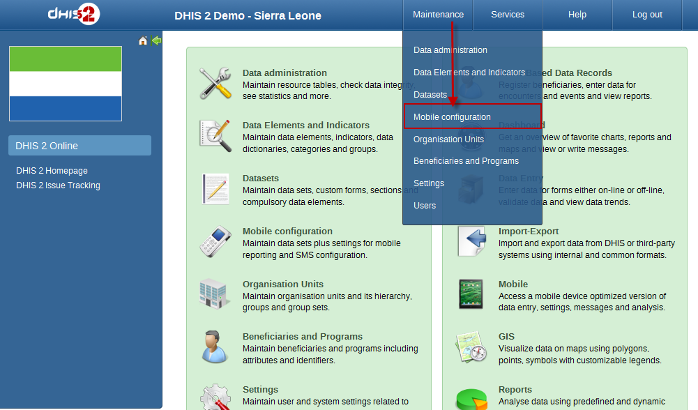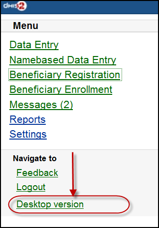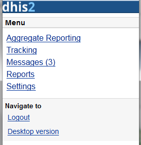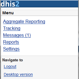 - Desktop version: navigate to the desktop version of DHIS2 for administration. This require a lot of resources from the client mobile, for example: the sufficient memory to load the pages. Not recommended for the normal GPRS/3G/... phones.