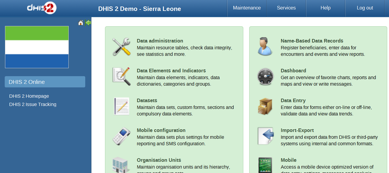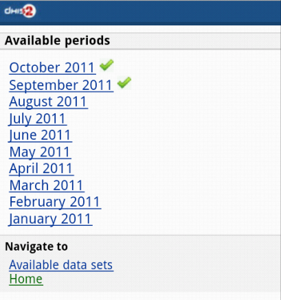 • DHIS2 Smartphone client: A mobile browser optimized data entry module for Smartphone devices