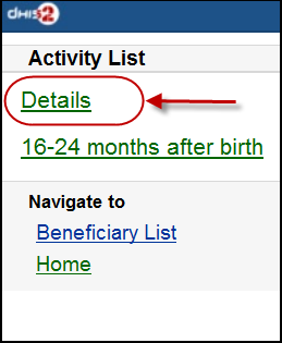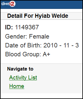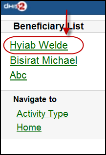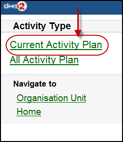 • Current Activity Plan: the list of the beneficiaries registered, enrolled, not yet finish/complete a/many program and there is at least a program-stage open for data-entry.