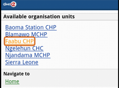 Step 1: Select an Organisation Unit from the list