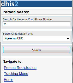 2. Tracking: Find/Add Person, Visit Schedule, Person Registration, Anonymous