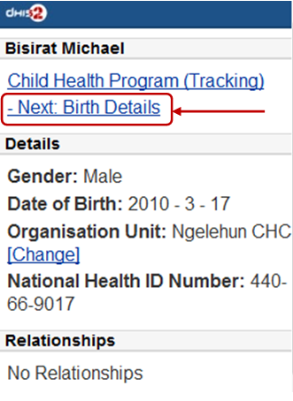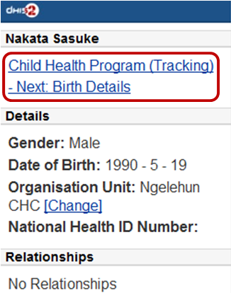 To view all the program stages, click on the name of that program (Child Heath Program as the screen shot)