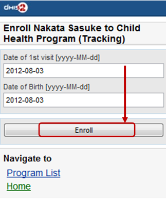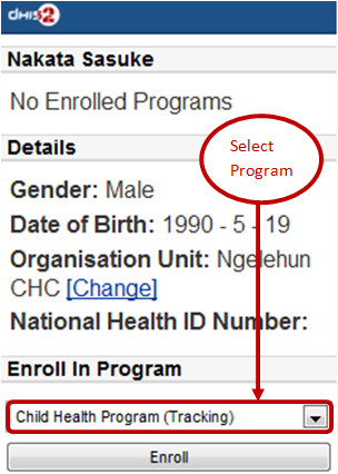 • Step 2: Enrol program for the person just been registered, then click "Enroll".