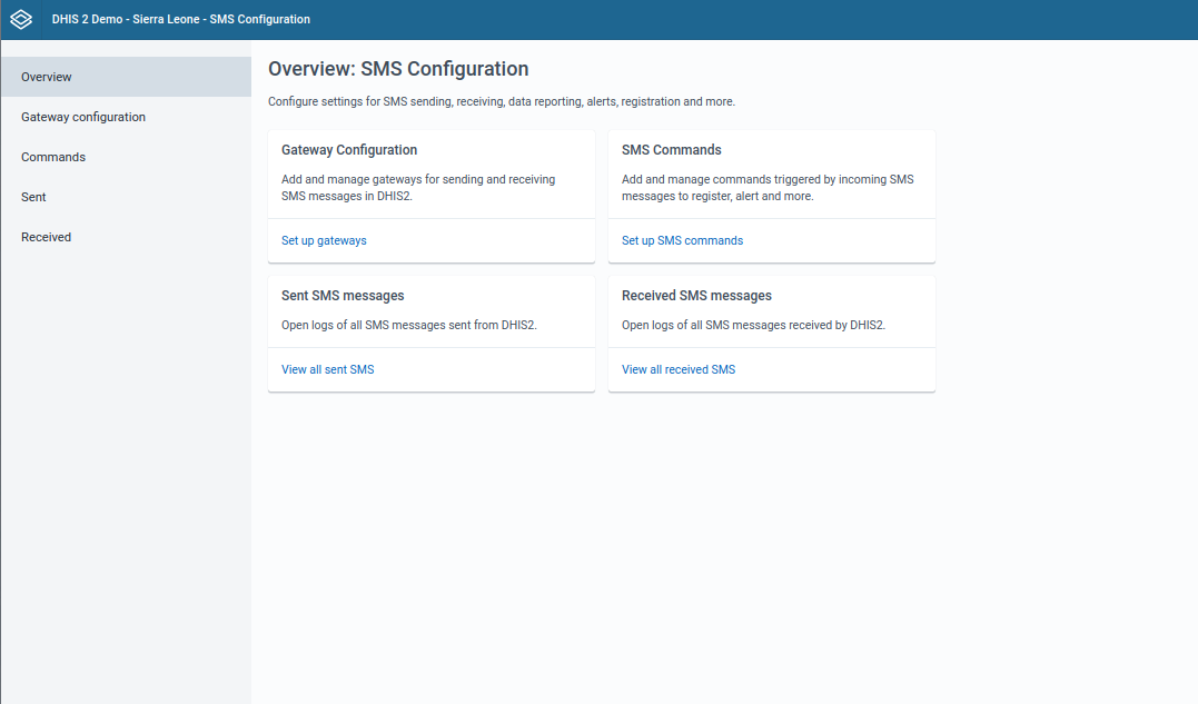 SMS Service is a generic service used for sending/receiving SMS. Any other DHIS2 module can include this service and utilize it to send and receive SMS from users or workers in the field.
