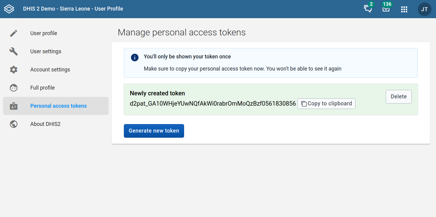 PATs are useful in cases where external services and integrations must communicate securely with your DHIS2 instance. As tokens inherit the authorities of their associated account, you can ensure that your integrations are only able to read and modify relevant data.