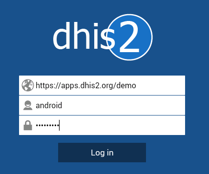 After you install and launch the Data Capture app on your device, when you launch it for the first time, you will be required to enter the server URL address of the DHIS2 server and your user name and password. Be sure to specify the full address of the server and protocol (either https or http). Once you have specified all details, press "Log in" to authenticate with the server.