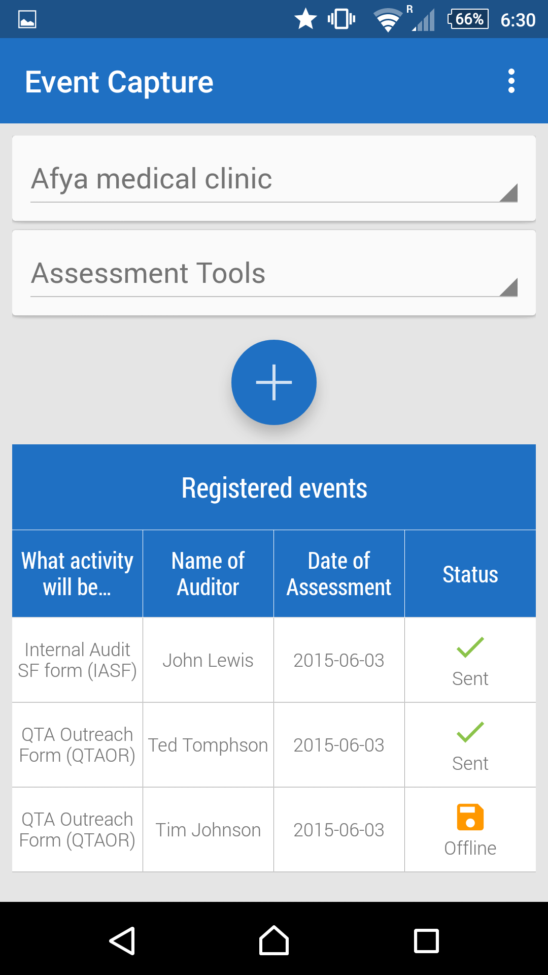 The event capture Android app allows you capture, modify and list events. The event capture app works with event-based programs in DHIS2, which handles anonymous events not linked to registered entities. These programs are suitable for handling scenarios such as facility surveys, hospital registry summaries and training events. However the app is not tied to any specific domain and can potentially be utilized for any scenario of event-based information.