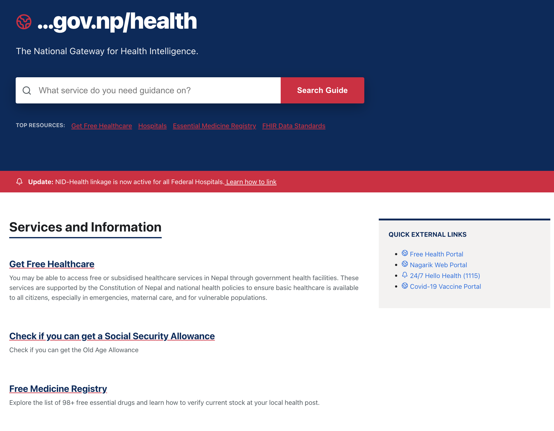 Governed by the Ministry of Health and Population (MoHP), CIHIS aligns with Nepal’s eHealth Strategy and supports SDG 3 (Good Health), SDG 9 (Infrastructure), SDG 10 (Equity), SDG 16 (Institutions), and SDG 17 (Partnerships) through a unified national digital health ecosystem.